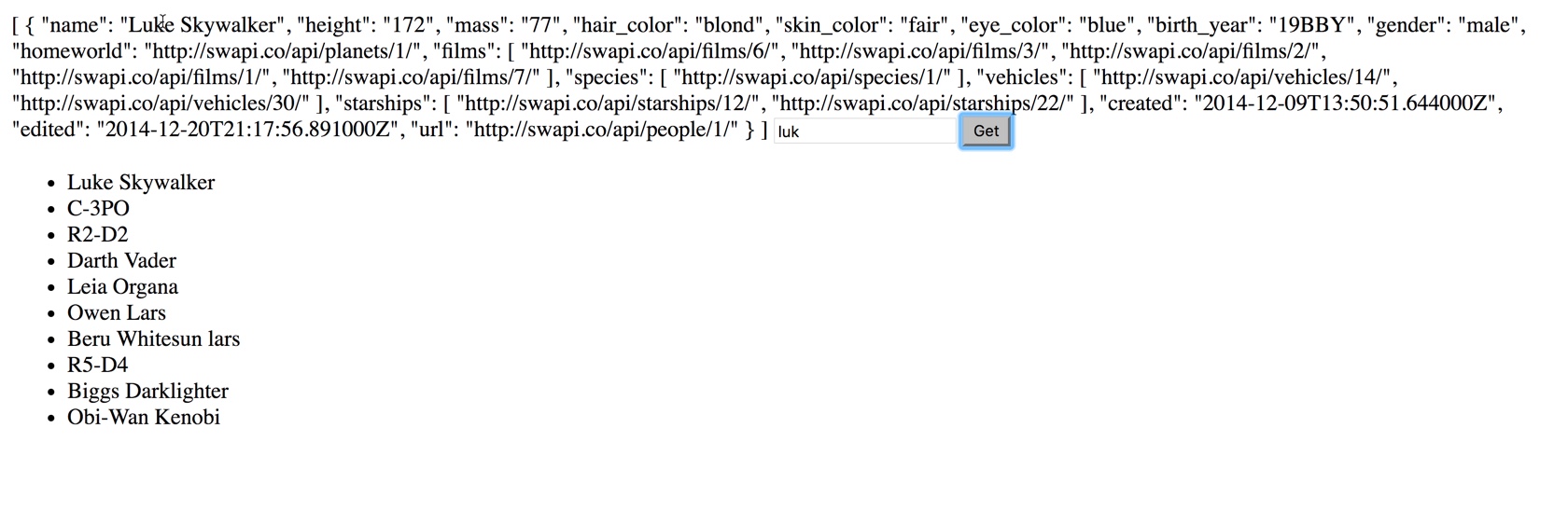getPeoplemethod in thePeopleServicethat calls this endpointhttps:swapi.co/api/people. - Bind the returned data to an unordered list in the component with an async pipe and a property called people$