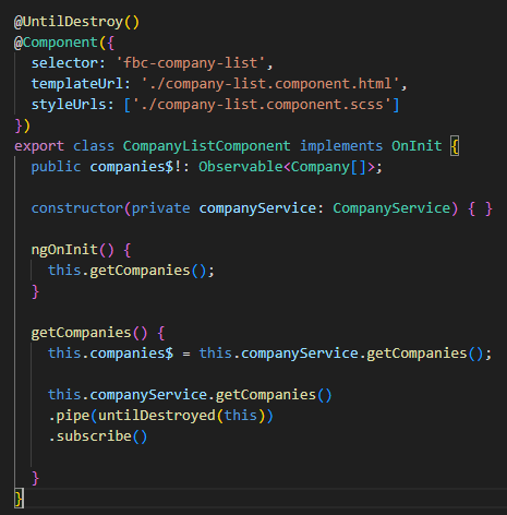 getCompanies()method to remove the subscription and pass the observable directly tocompanies$