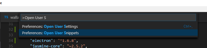 - Press F1 Then type '>Open User Snippets'